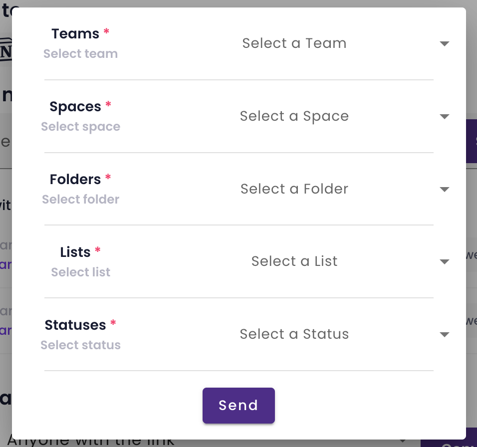 You will be prompted to select the ClickUp space, folder, and list to which you want to add highlights. Click "Send" and all tasks will immediately appear in your ClickUp workspace.