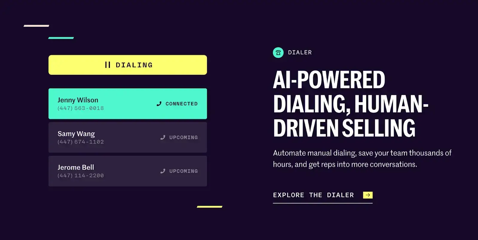 - Orum automates the task of manually dialing up prospects with their AI-powered dialer.
