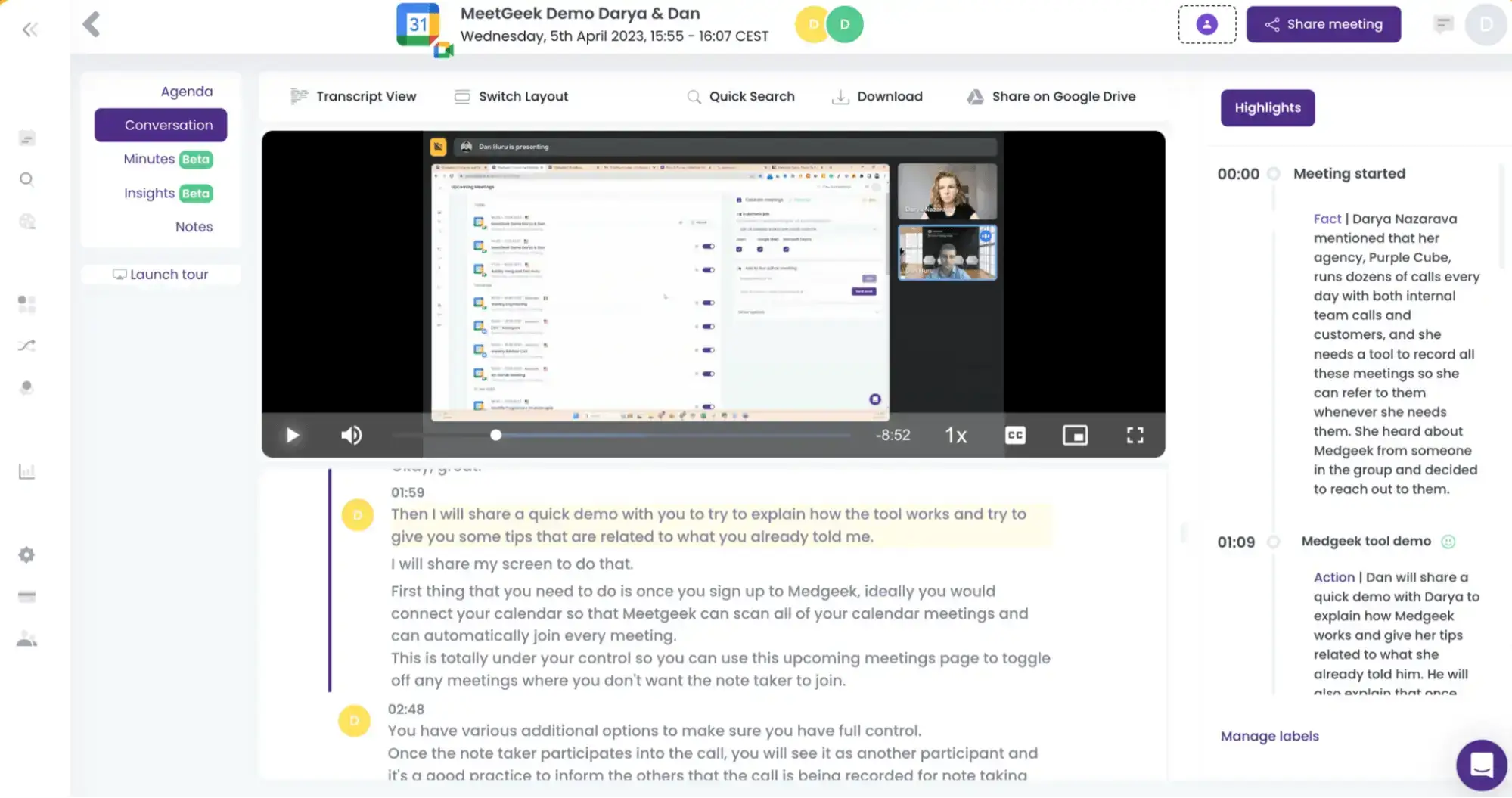 For example, utilizing a tool such as MeetGeek to help with a task such as summarizing and transcribing meetings can make you more productive in meetings and, as a result, add more time to devote to other, more important tasks, and save meeting costs.