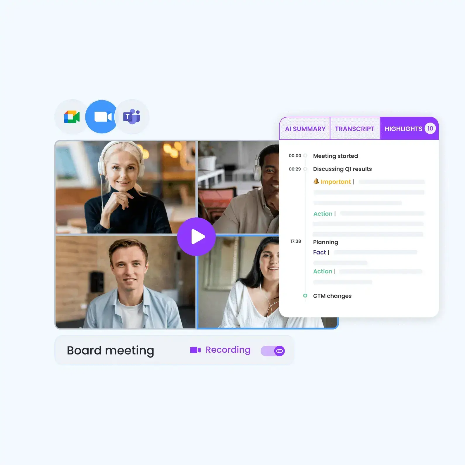 Keep using your favorite tools while MeetGeek automatically syncs meeting content and key highlights wherever your team gets work done.