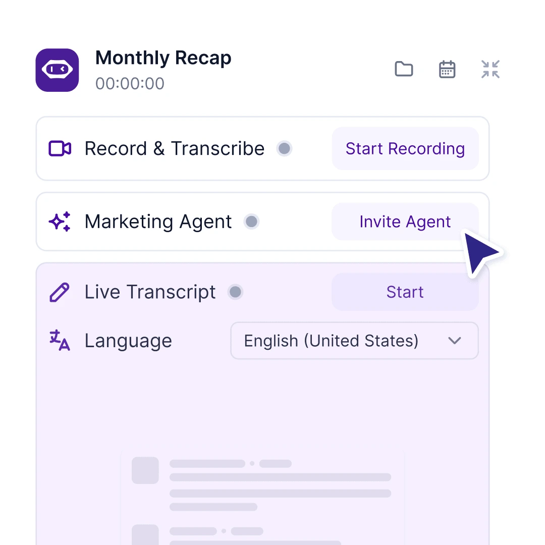 Automatically joins your calls when it detects a scheduled event in your connected calendar. Perfect for recurring calls  or when you’re joining from mobile.