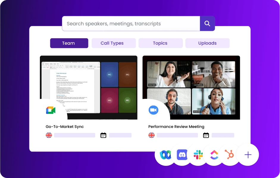 Connect MeetGeek with your favorite tools to make every meeting automatically captured, transcribed, and summarized — without lifting a finger.