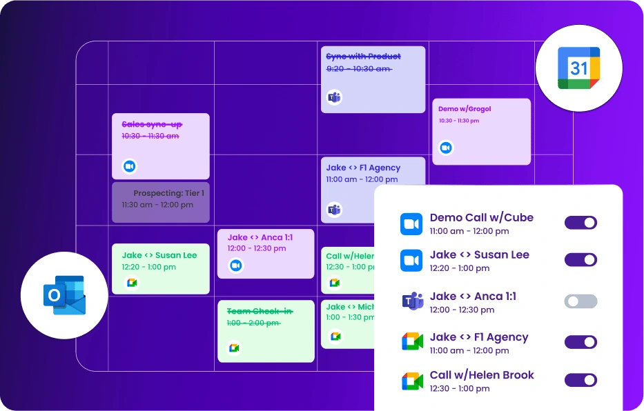 Syncs upcoming meetings from your connected calendar (Google or Outlook).