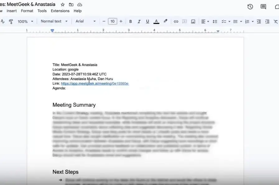 But if you’re more traditional and prefer to store your meeting notes in Google Docs, you can also do so straight from MeetGeek.