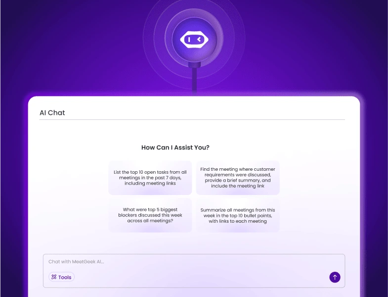 From capturing your meetings to automating your workflows, MeetGeek AI Chat makes the process simple and seamless.