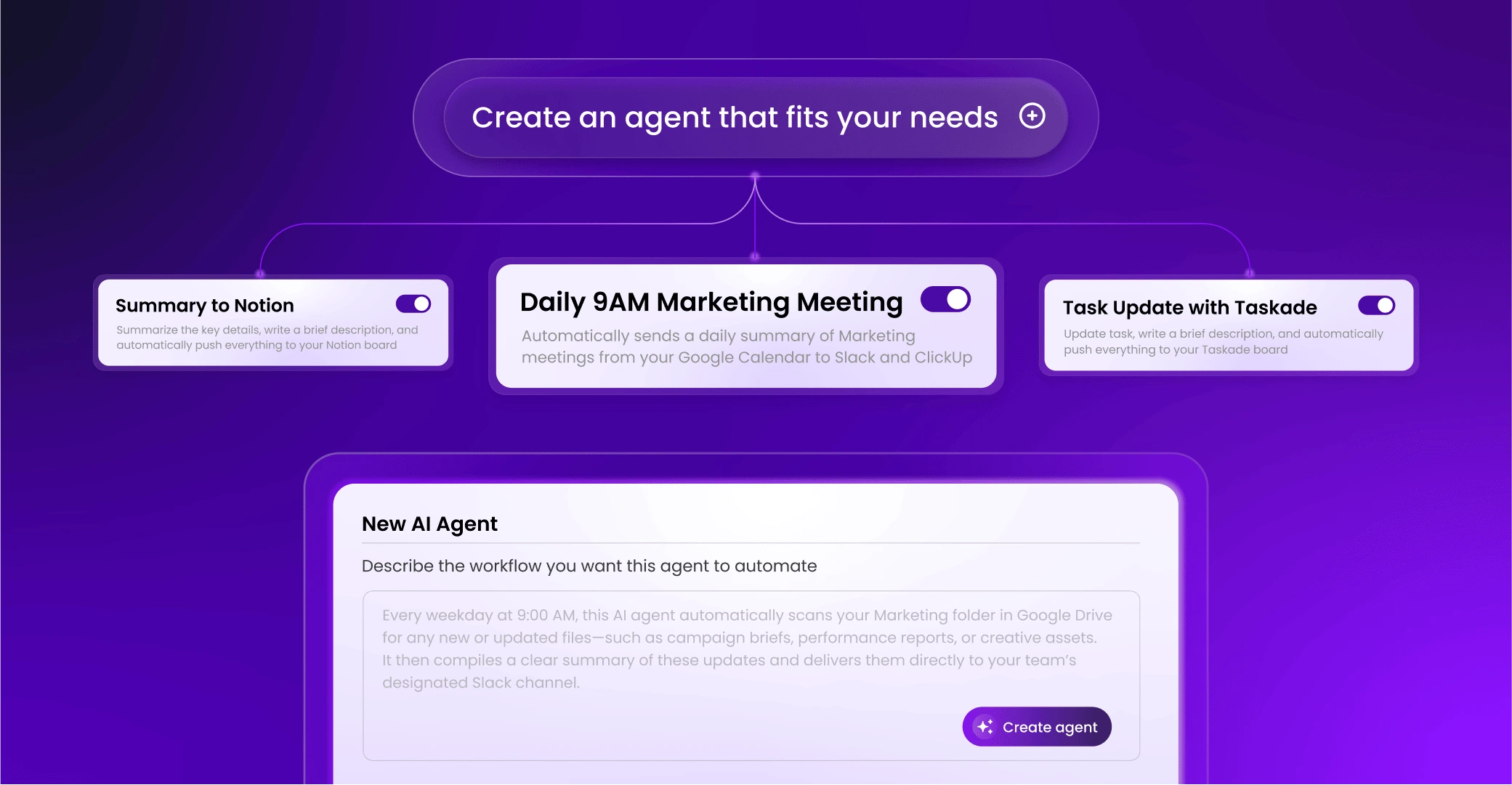 Imagine telling your AI assistant, “Send a report with due tasks from ClickUp every Monday,” or “Share meeting follow-ups in Slack” — and it just gets done.