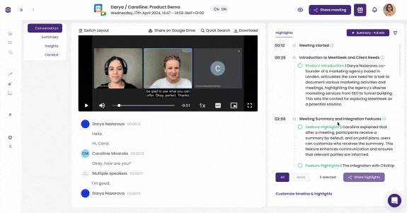 If you’re tired of juggling note-taking during meetings, MeetGeek is a game-changer. It’s an AI-powered meeting automation and collaboration tool that takes the hassle out of writing meeting minutes.
