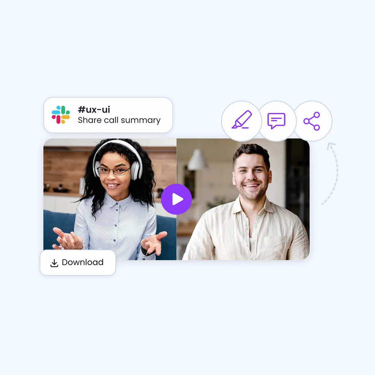 Haga que la información clave sea fácilmente accesible, se pueda compartir y esté disponible para volver a verla bajo demanda. Comparta los aspectos más destacados con su equipo para adaptarse a las necesidades y requisitos de los clientes y ofrecer la solución adecuada.