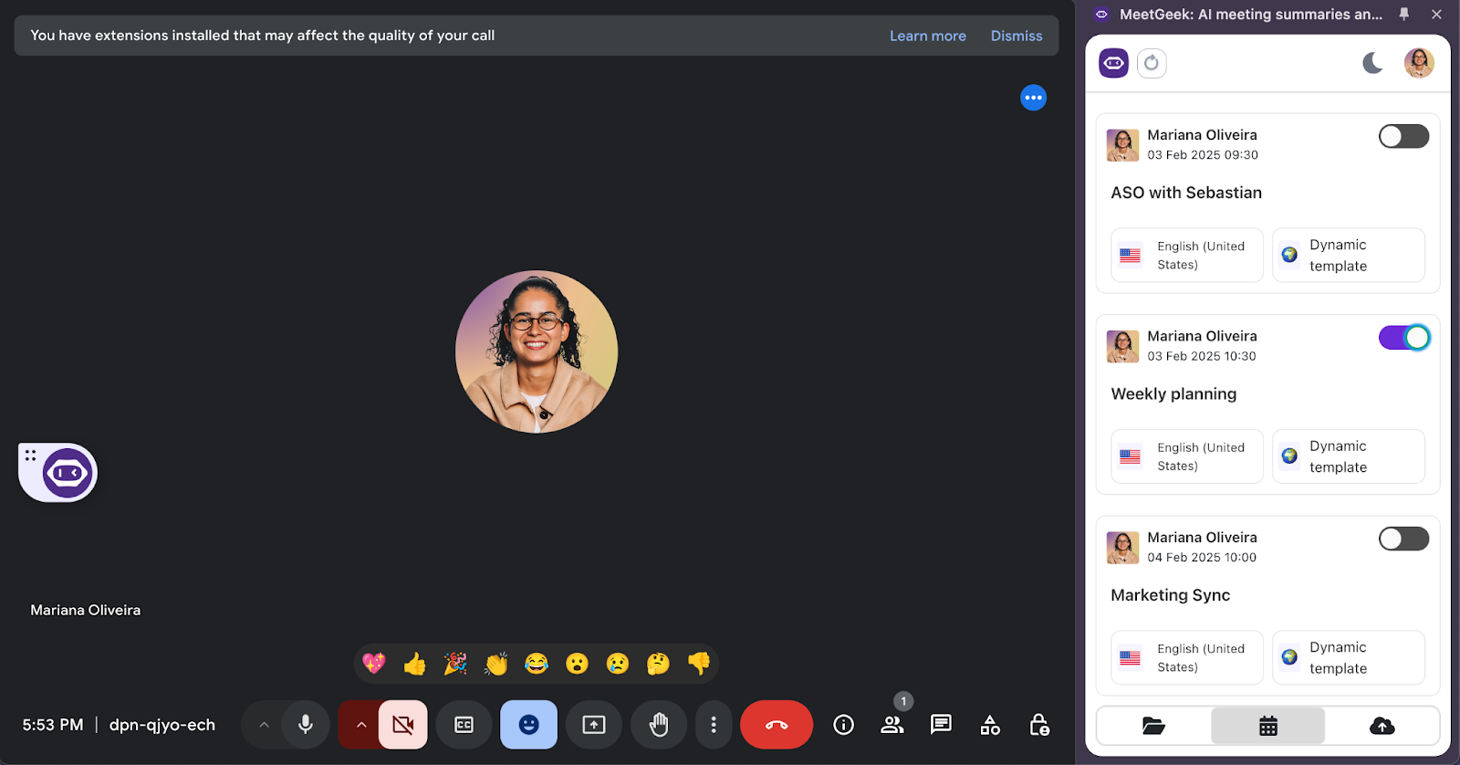MeetGeek can capture meetings in multiple ways. The calendar assistant can automatically join Google Meet or Microsoft Teams calls, the browser extension supports recording on other platforms, and the desktop app can record any online meeting with full accuracy.