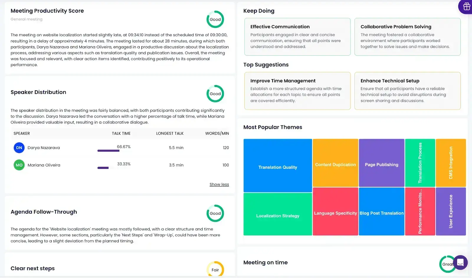 MeetGeek records and analyzes your sales calls, providing actionable insights such as: