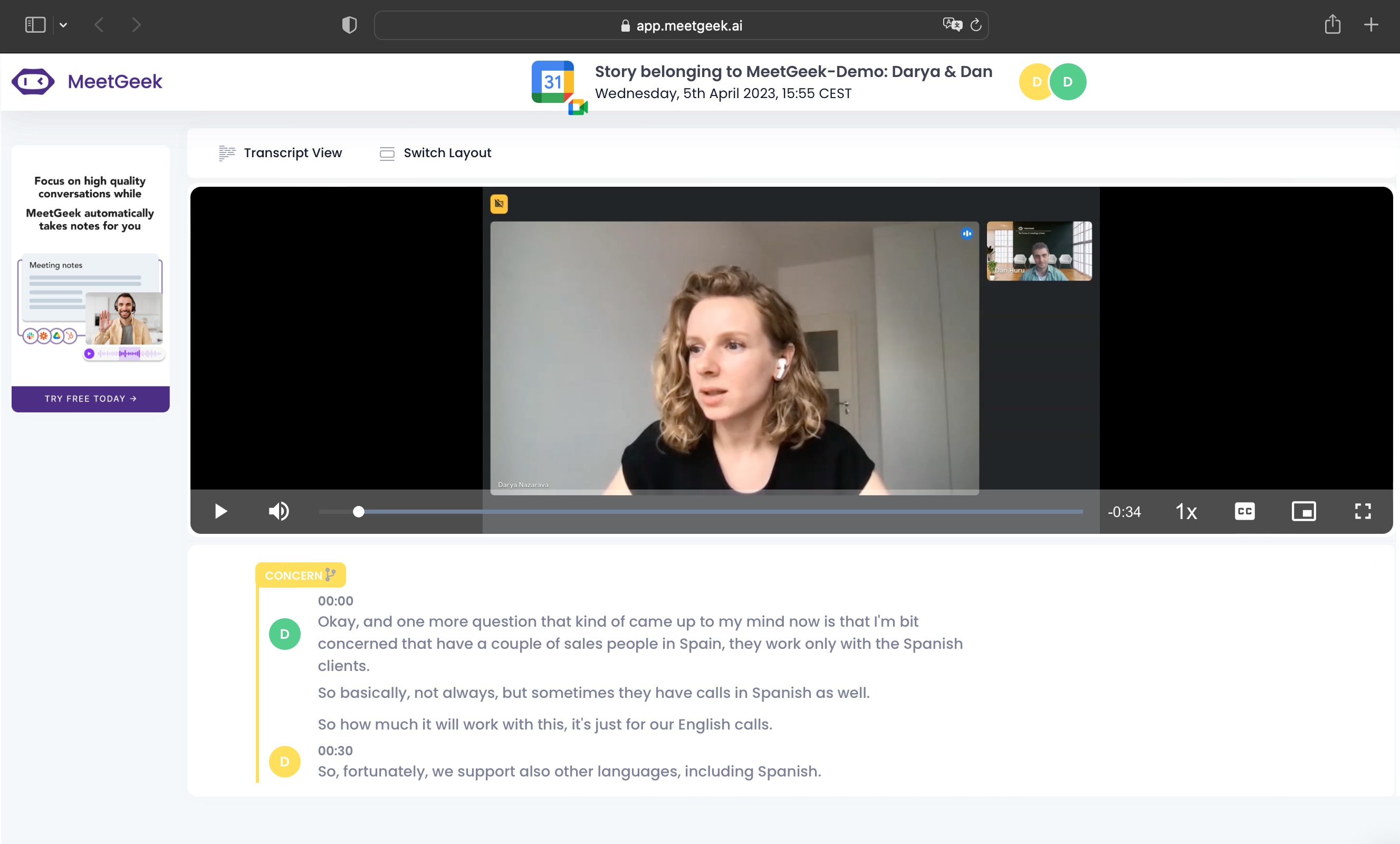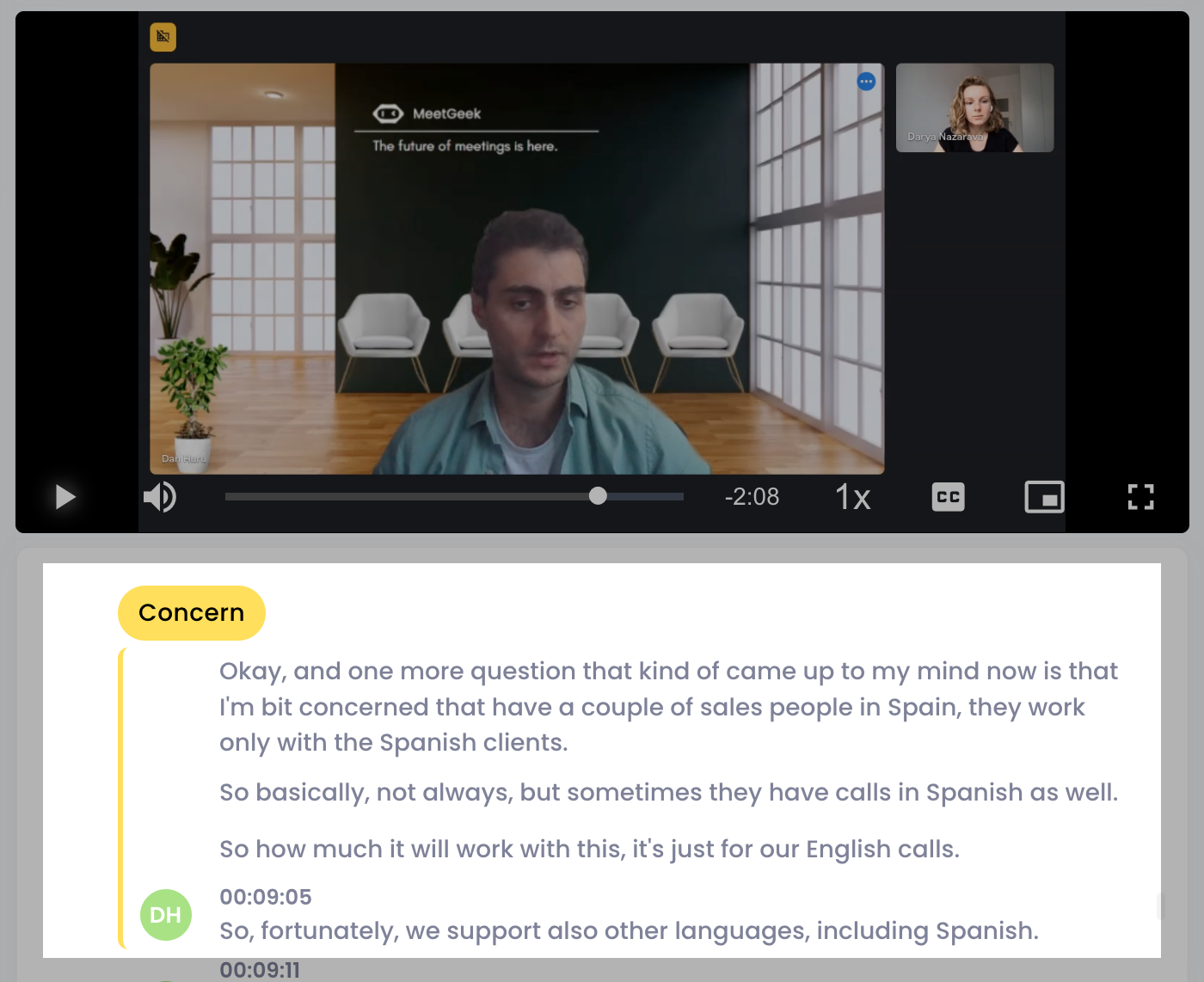 MeetGeek analyzes your conversation and tags it with four out-of-the-box AI-based highlights.