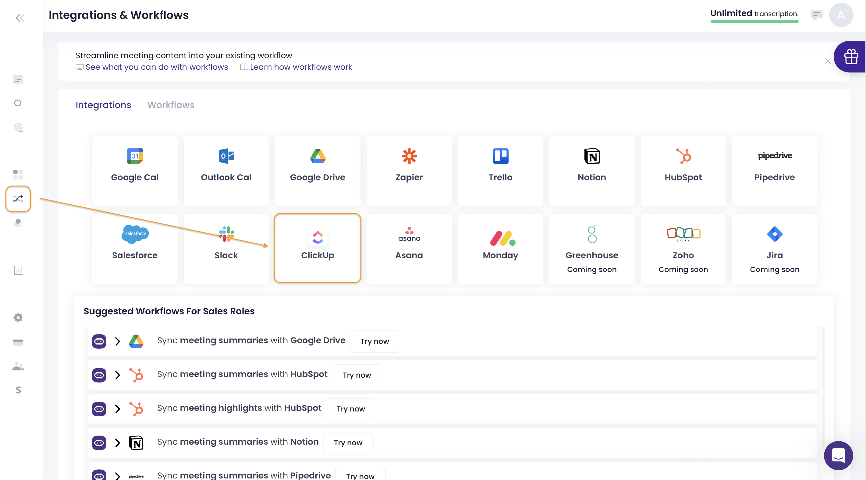 Now, let's review how to automatically connect every meeting or highlight with your ClickUp space, saving you hours of manual work each week. Let’s proceed with the creation of an automated workflow.