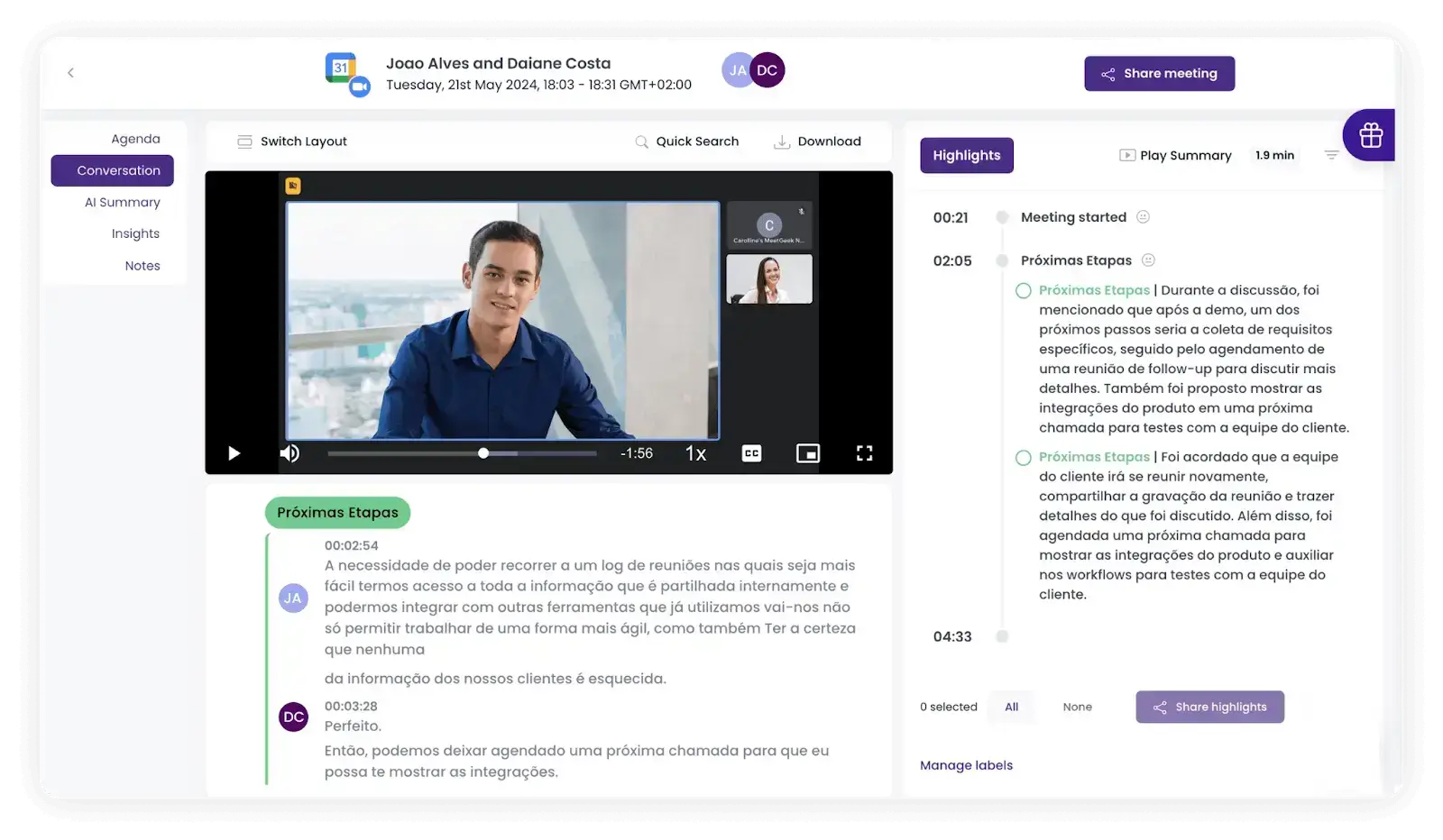 Algo que a TWRT achou diferenciado na MeetGeek foi a elevada precisão de transcrição de voz em Português, que vinha sendo um dos aspetos negativos apontados em outras soluções.