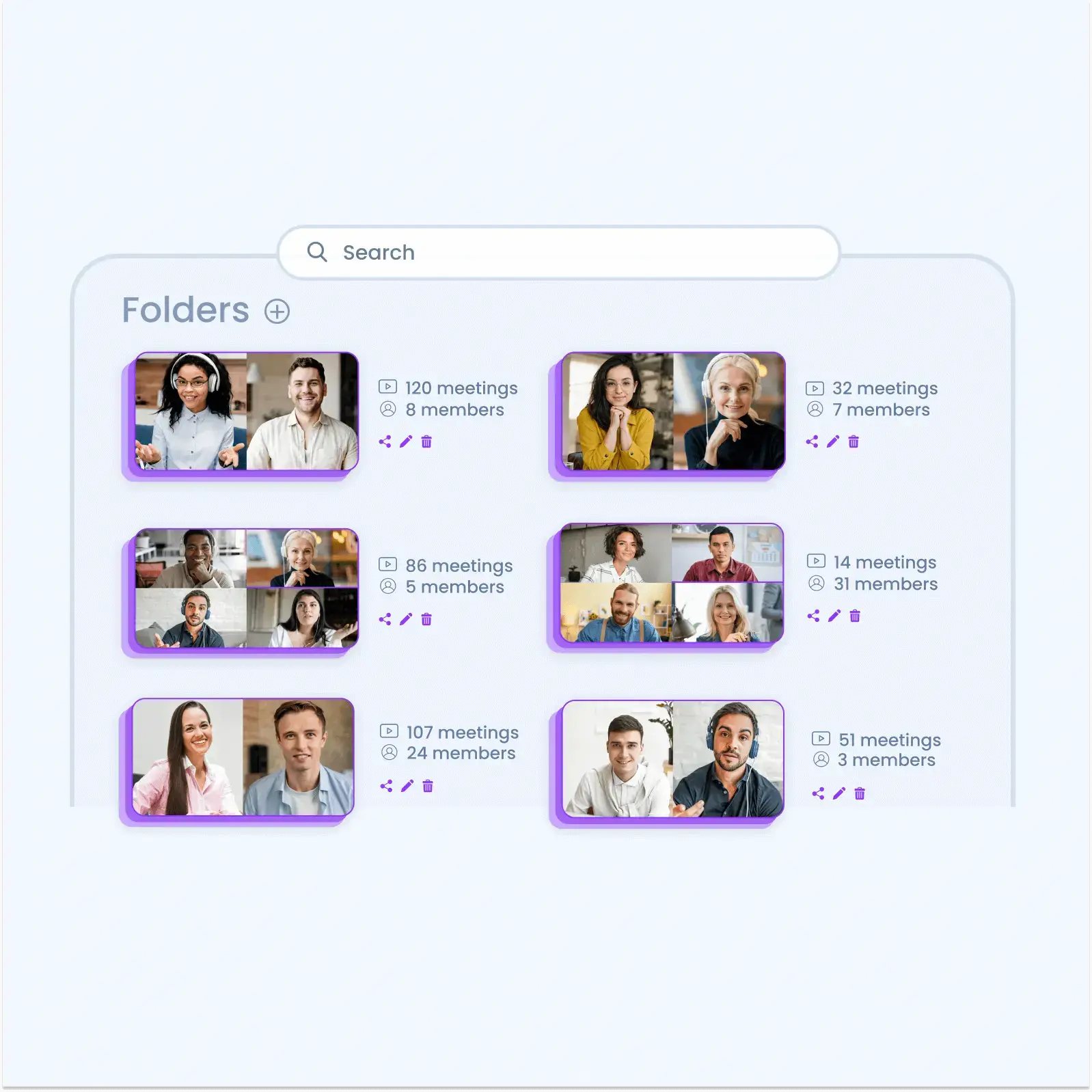 Grâce au référentiel d'enregistrements de réunions de MeetGeek, chaque interaction client est à portée de clic. Utilisez la recherche globale par mot clé pour obtenir le contexte complet de vos réunions passées et retrouver facilement des moments spécifiques.