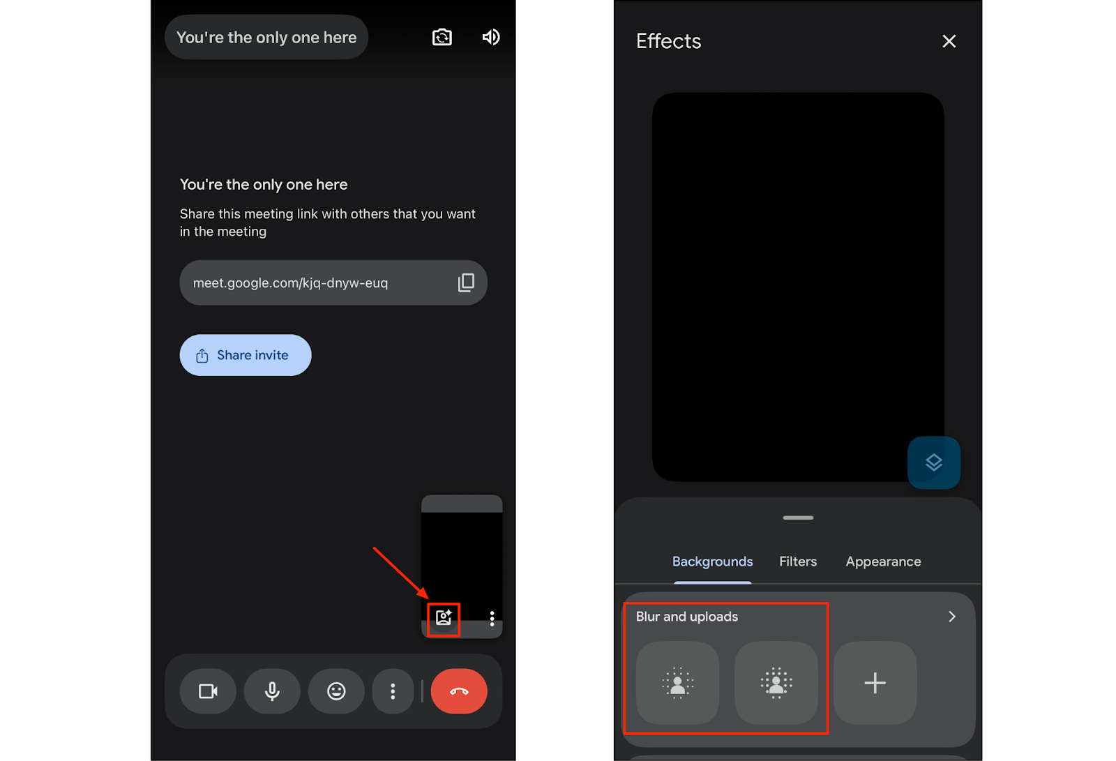- Either tap Blur background or Background and effects, and from the panel, choose: