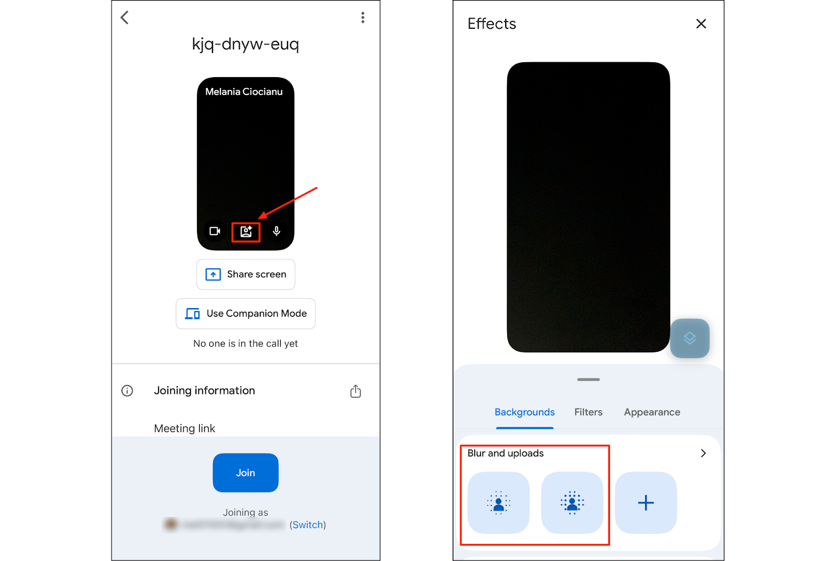 - Click Join to enter the video call with your selected effect applied.