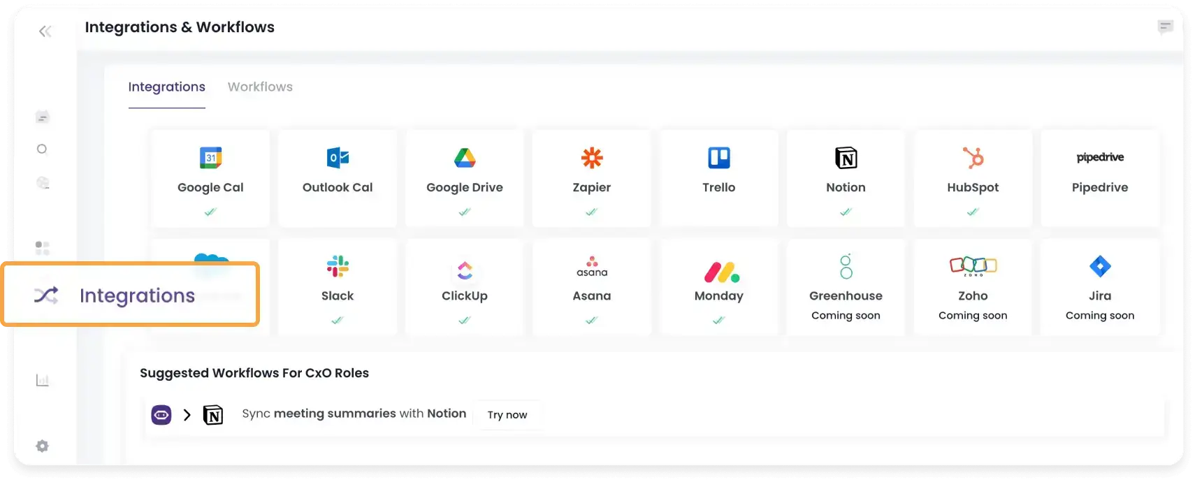 With its extensive suite of integrations, MeetGeek allows you to easily export all your meeting data to your favorite project management software, knowledge-sharing spaces, task-management boards, etc.