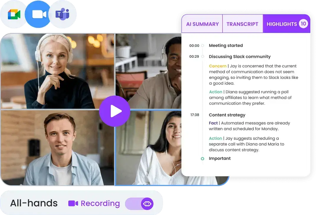 “We use MeetGeek to record all our meetings, which means we're not constantly trying to jot down notes. This helps us focus more on the conversation and really listen to what the client is saying.”