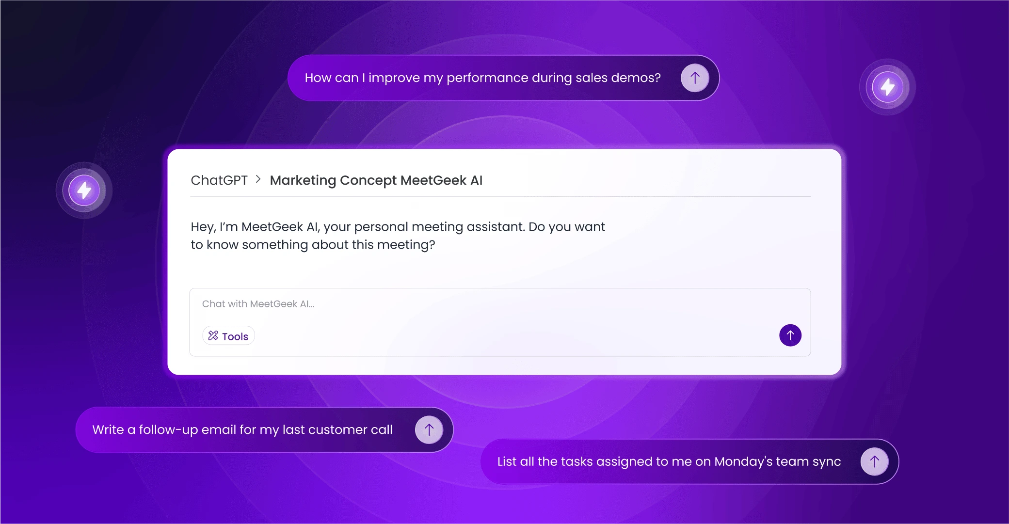 From capturing your meetings to automating your workflows, MeetGeek AI Chat makes the process simple and seamless.