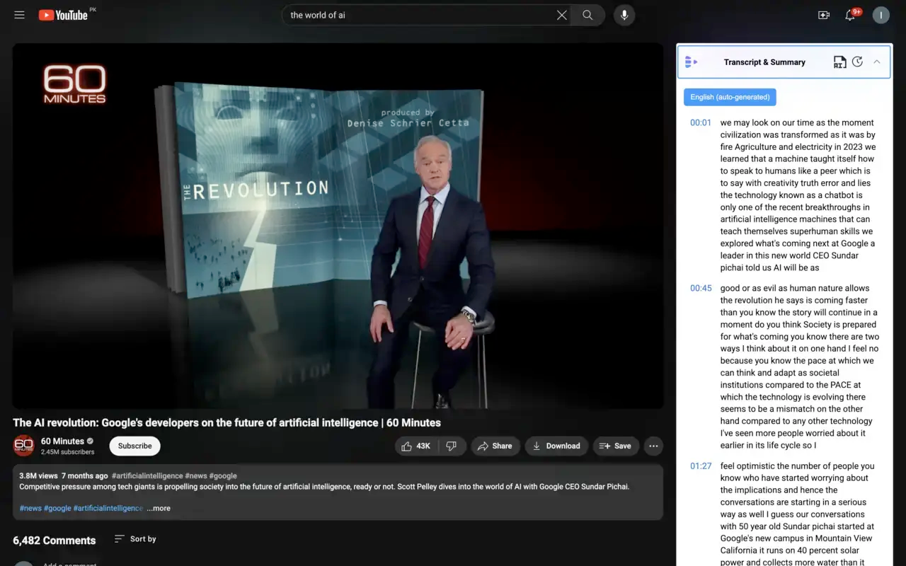 • Instant summaries for YouTube videos