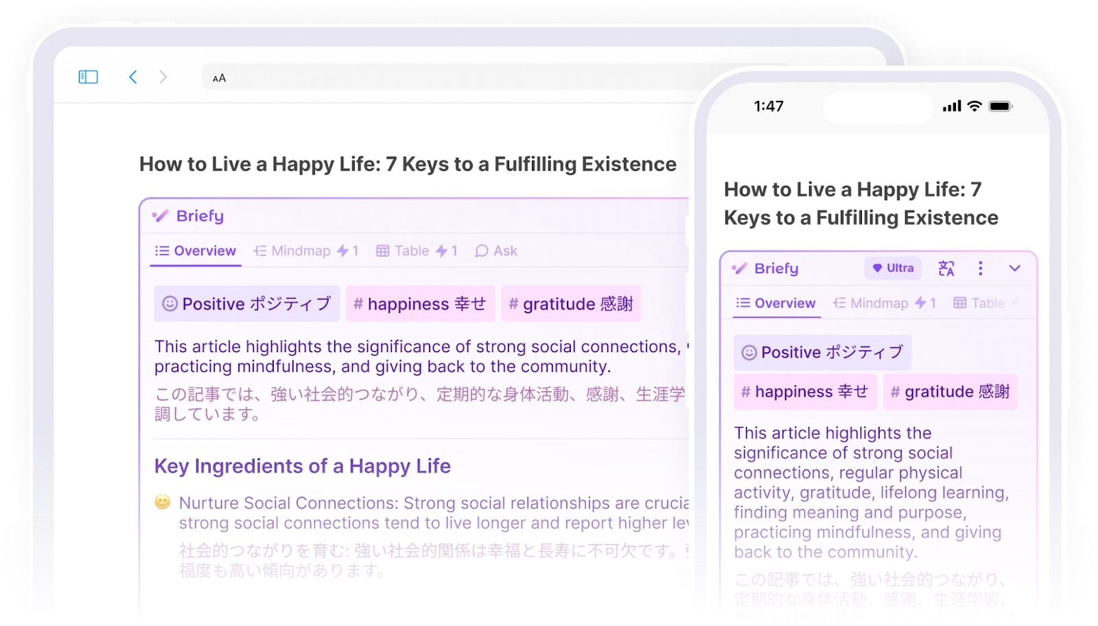 • AI-powered summaries for YouTube videos, articles, PDFs, and podcasts