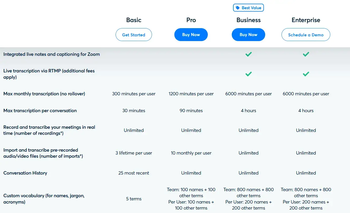 Finally, Otter AI offers an Enterprise plan with custom pricing.