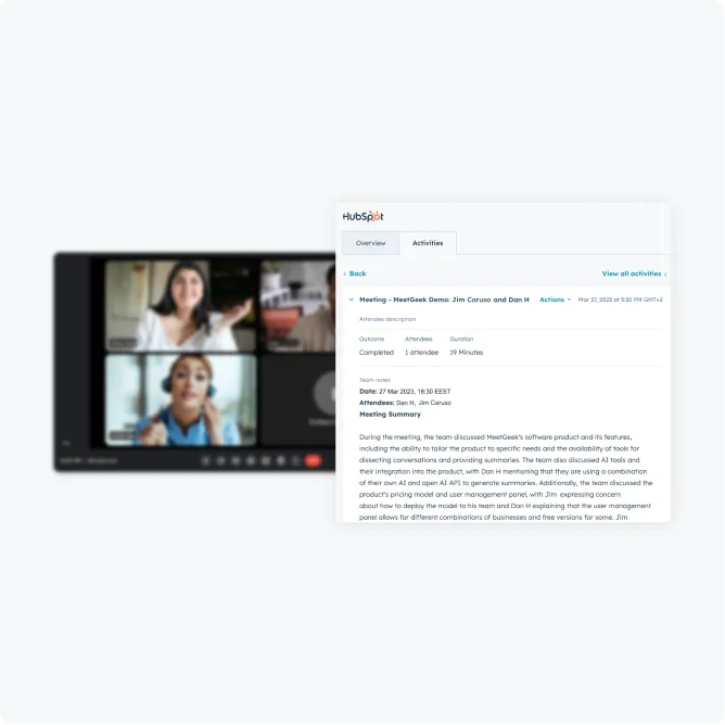 Concentre-se em conversas de alta qualidade com clientes potenciais enquanto as notas da reunião são automaticamente capturadas e sincronizadas com seu CRM.