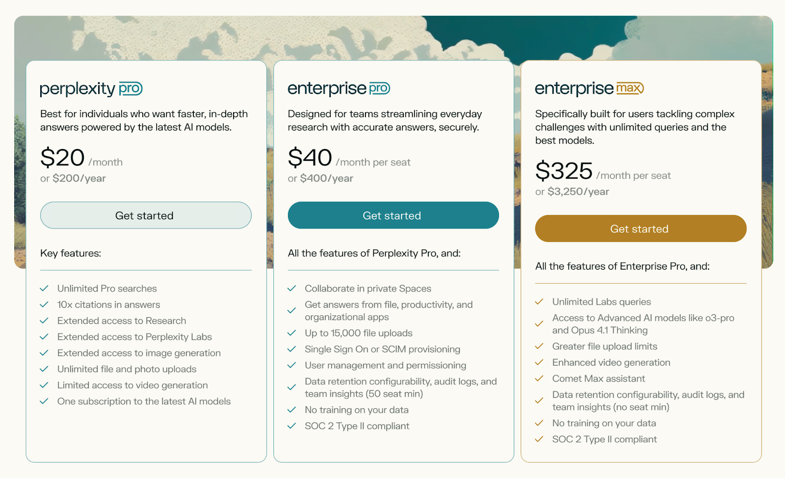 Enterprise Max — $325 per seat per month or $3,250 per seat per year